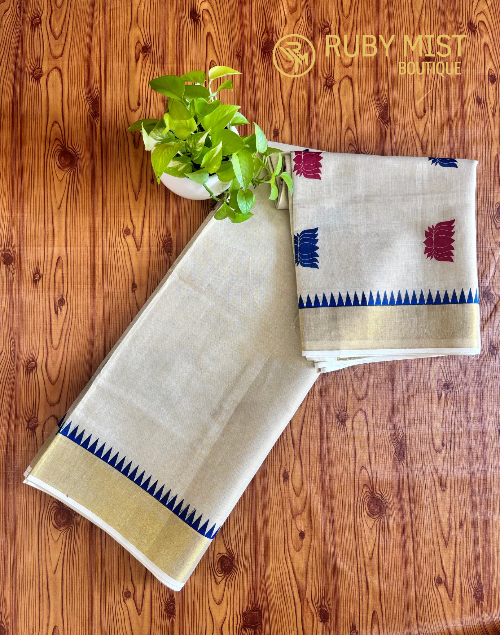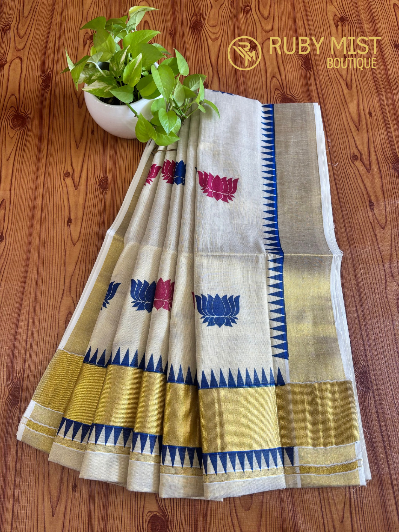 Last stock! Product form Lotus Printed Tissue Saree. Rs. 850.00 Golden zari with Komma design. Lotus buttad on body and pallu. Read more Read more Color offwhite Need help with your size? Size finder 1 in stock. Dispatch in 3-5 daysShow extra info for delivery time Add to cart This item is a recurring or deferred purchase. By continuing, I agree to the cancellation policy and authorize you to charge my payment method at the prices, frequency and dates listed on this page until my order is fulfilled or I cancel, if permitted. Terms & Conditions Care guide Maintenance instructions• Machine wash 40°• Iron medium temperature• Drying medium temperature• Do not dry clean• Only non-chlorine bleach if needed Reviews 0 reviews Share with your friends Share WhatsApp Deel X Pin it Messenger Email Description Golden zari with Komma design. Lotus buttad on body and pallu.
