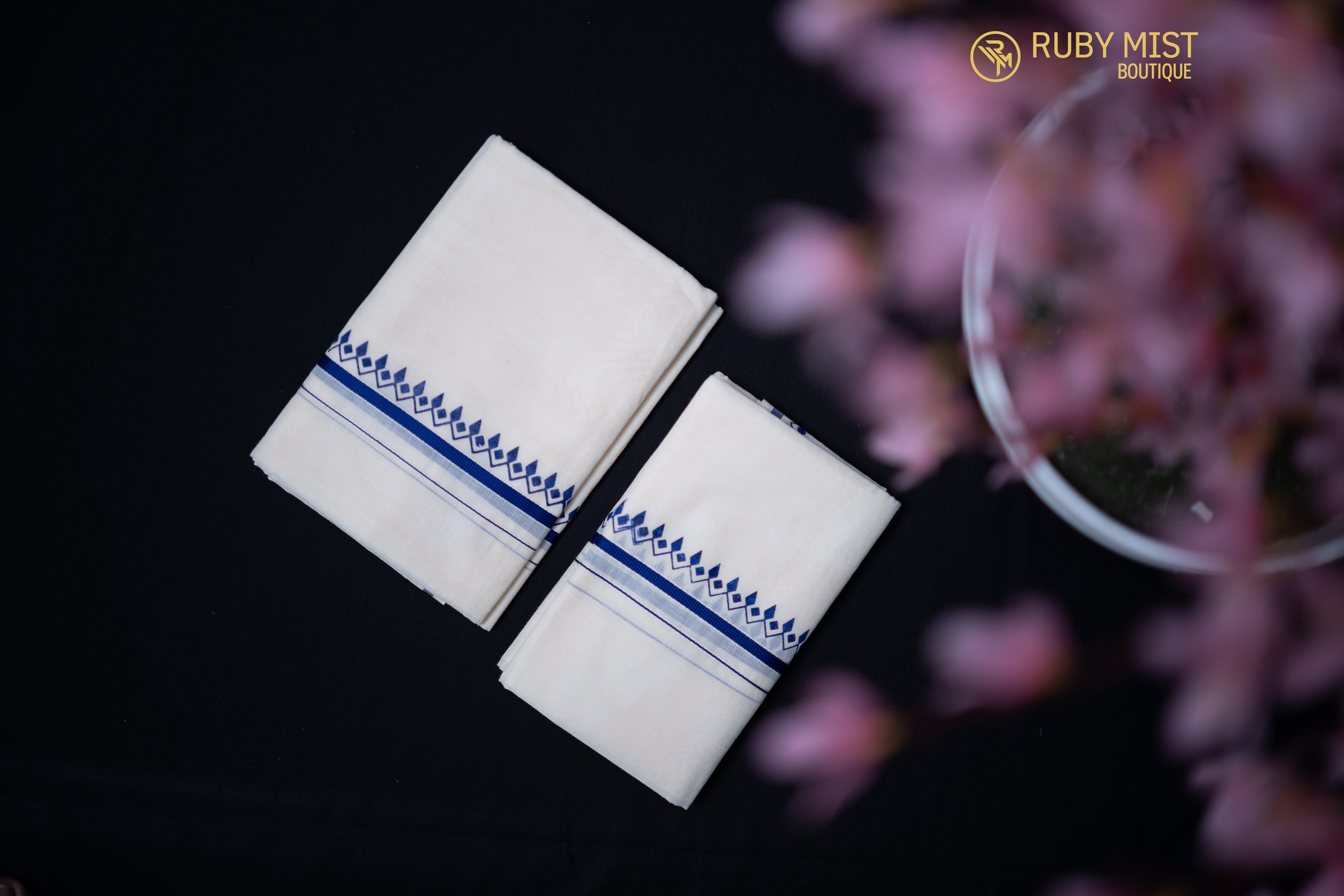 SINGLE SET MUNDU TWO PIECE PULIYILAKARA BORDER WITH GEOMETRICAL PRINT