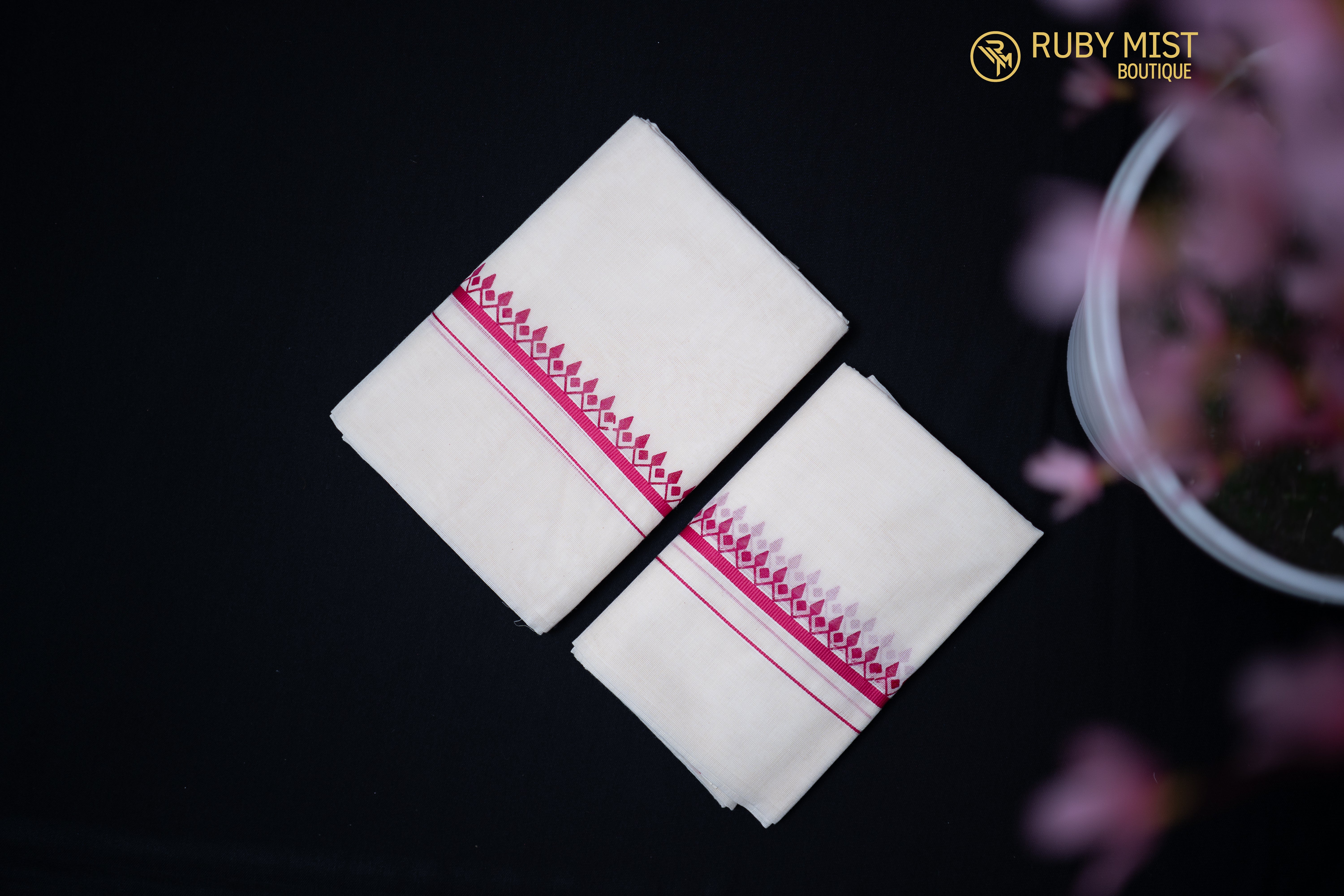 SINGLE SET MUNDU TWO PIECE PULIYILAKARA BORDER WITH GEOMETRICAL PRINT