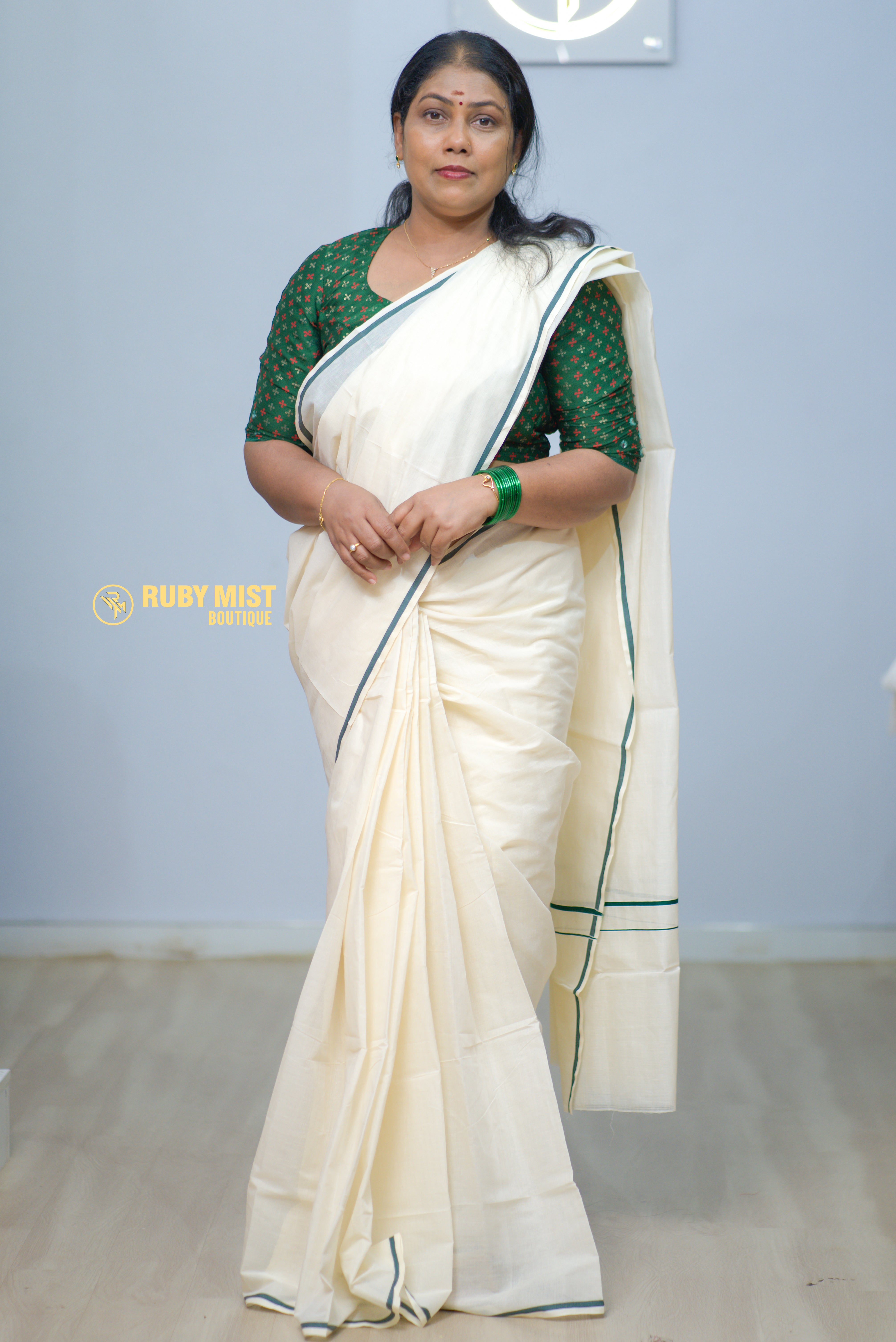 SET SAREE WITH BLOUSE PULIYILAKARA BORDER