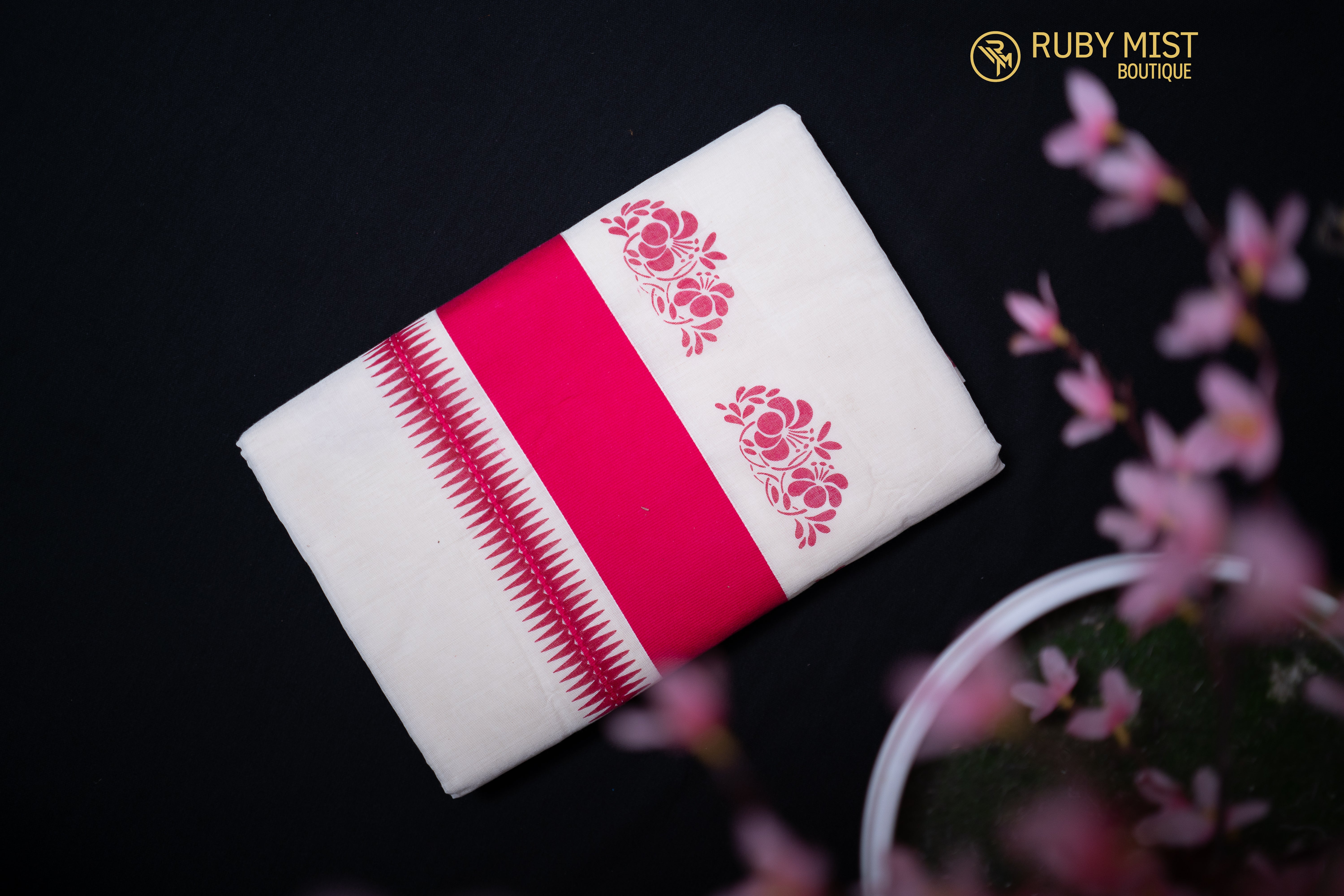 COLOUR BORDER WITH KOMMA DESIGN AND FLORAL MOTIFS