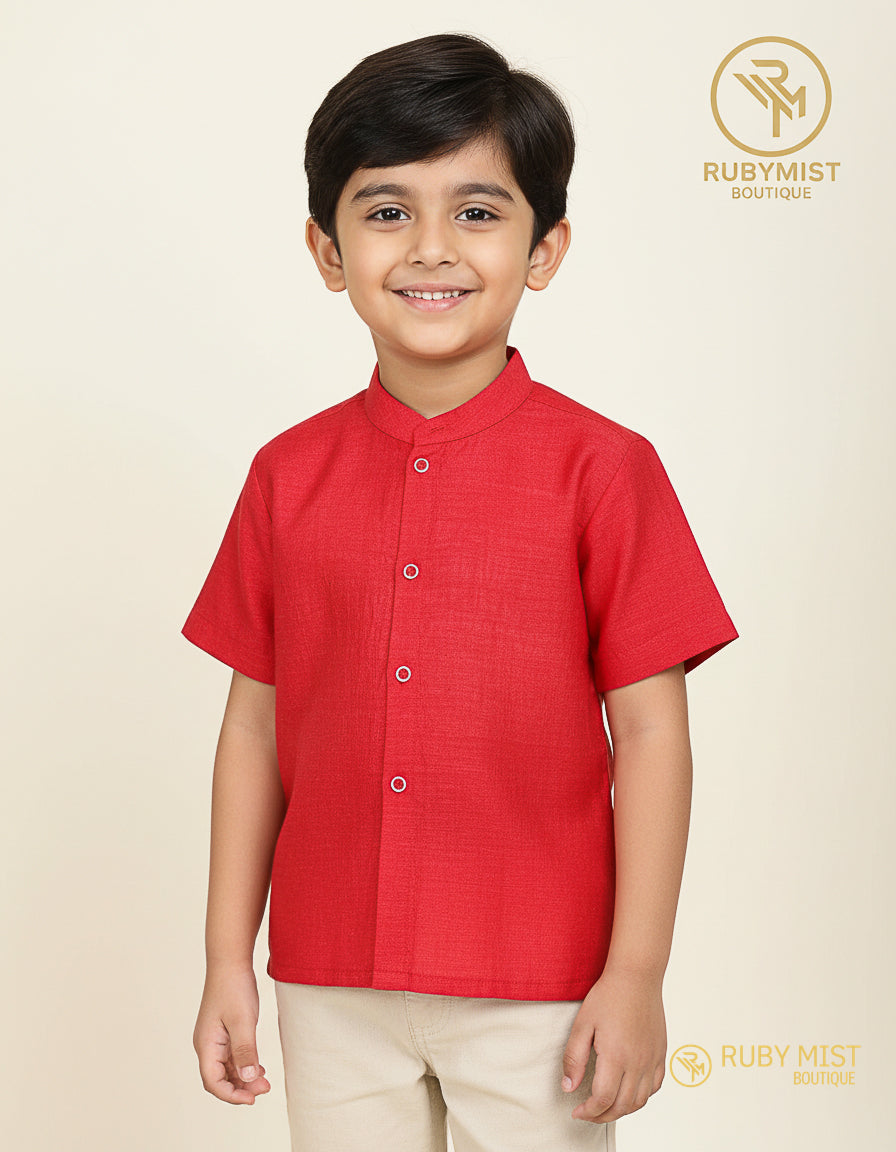 Chinese collar neck patterned shirt kurtha with press button. And short sleeve