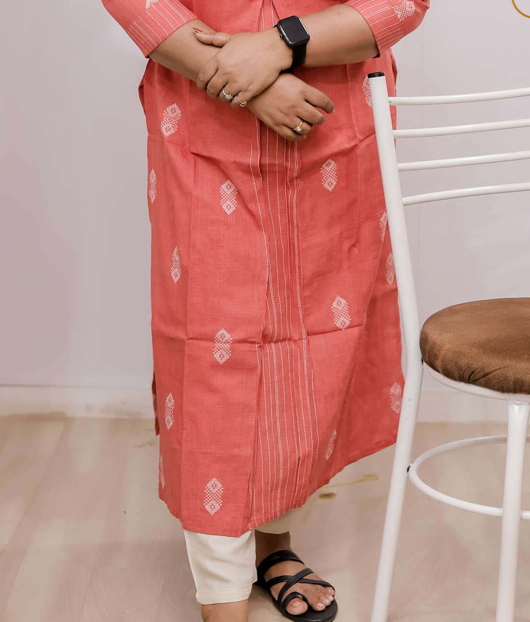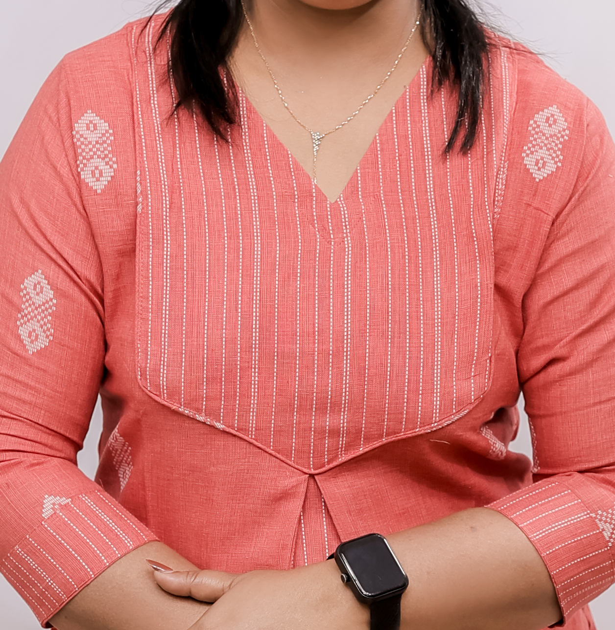 Product form Stripe patterned cotton kurti Rs. 650.00 Stipe pattern with v neck slitted top. Read more Read more Size L XL XXL M Color Dark Peach Need help with your size? Size finder Out of stock. Dispatch within 30-35 daysShow extra info for delivery time Out of stock This item is a recurring or deferred purchase. By continuing, I agree to the cancellation policy and authorize you to charge my payment method at the prices, frequency and dates listed on this page until my order is fulfilled or I cancel, if permitted. Terms & Conditions Care guide Maintenance instructions• Machine wash 40°• Iron medium temperature• Drying medium temperature• Do not dry clean• Only non-chlorine bleach if needed Reviews 0 reviews Share with your friends Share WhatsApp Deel X Pin it Messenger Email Description Stipe pattern with v neck slitted top.